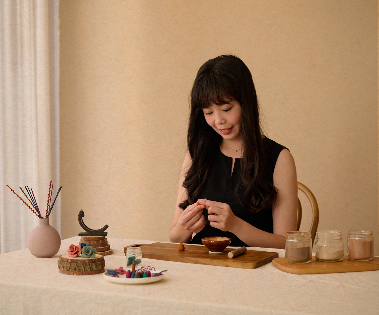 在機緣下接觸到到手作課程,從來沒有經驗的我,在做手作無意間讓我發現,我學的這些可以為房東打造室內布置美學,讓房客回到家有一個舒心的空間,在氣味的部分也能大大加分,每一次和房客的互動,讓我更感到快樂與滿足。